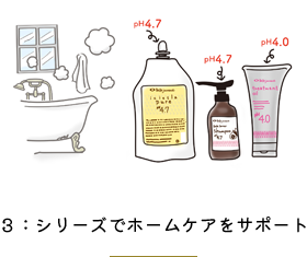 シャンプーやスタイリング、スキンケアシリーズなどのホームケア製品もトータルで サポート
